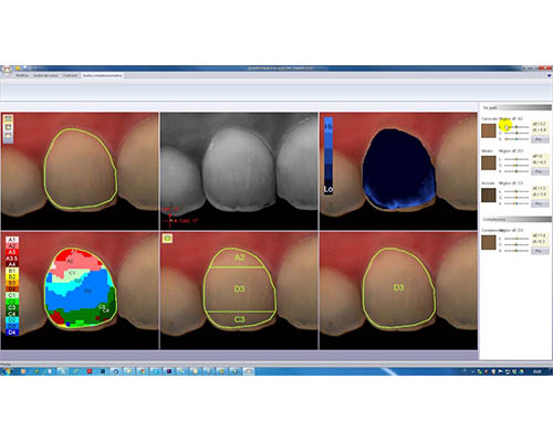 Per poter rilevare e misurare il colore da eseguire sui restauri protesici nel modo più oggettivo il Dottor Dino Monfredini Costa utilizza questo sistema di spettrofotometria in grado di realizzare una vera e propria mappatura del colore di ogni singolo dente.